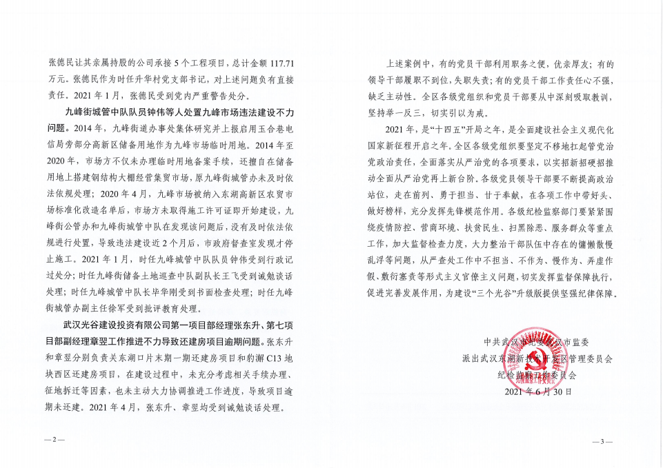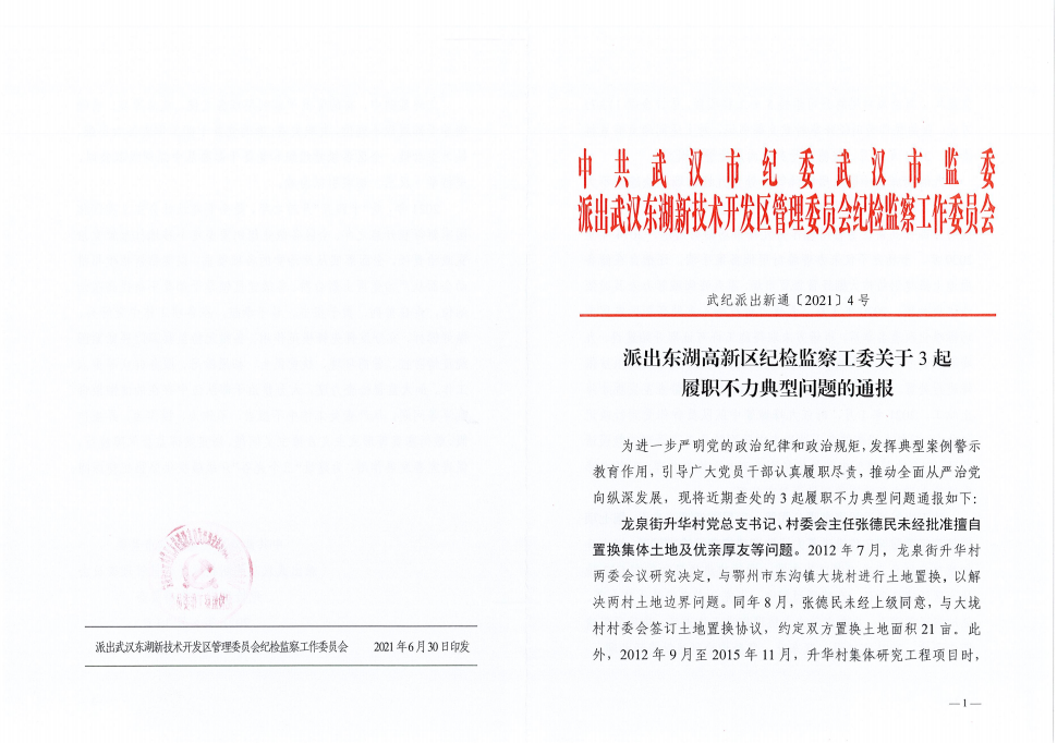 派出東湖高新區(qū)紀檢監(jiān)察工委關于3起履職不力典型問題的通報