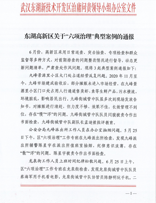 東湖高新區(qū)關(guān)于“六項治理 ”典型案例的通報