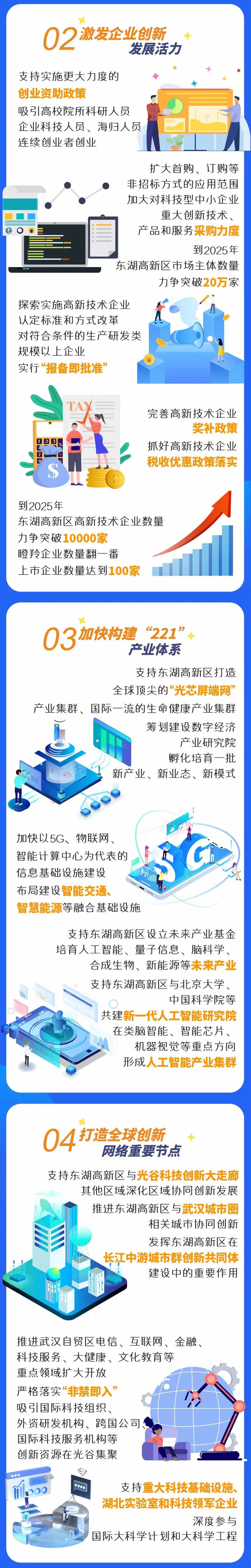 方案要求,加快推進以東湖科學城為核心的光谷科創(chuàng)大走廊建設,大力創(chuàng)建湖北東湖綜合性國家科學中心和武漢國家科技創(chuàng)新中心,為國家高水平科技自立自強提供戰(zhàn)略支撐。加大對東湖高新區(qū)規(guī)劃建設、產業(yè)發(fā)展、創(chuàng)新資源配置的統(tǒng)籌力度,增強東湖高新區(qū)對全市經濟的輻射帶動作用,以推動全市全域自主創(chuàng)新發(fā)展。
