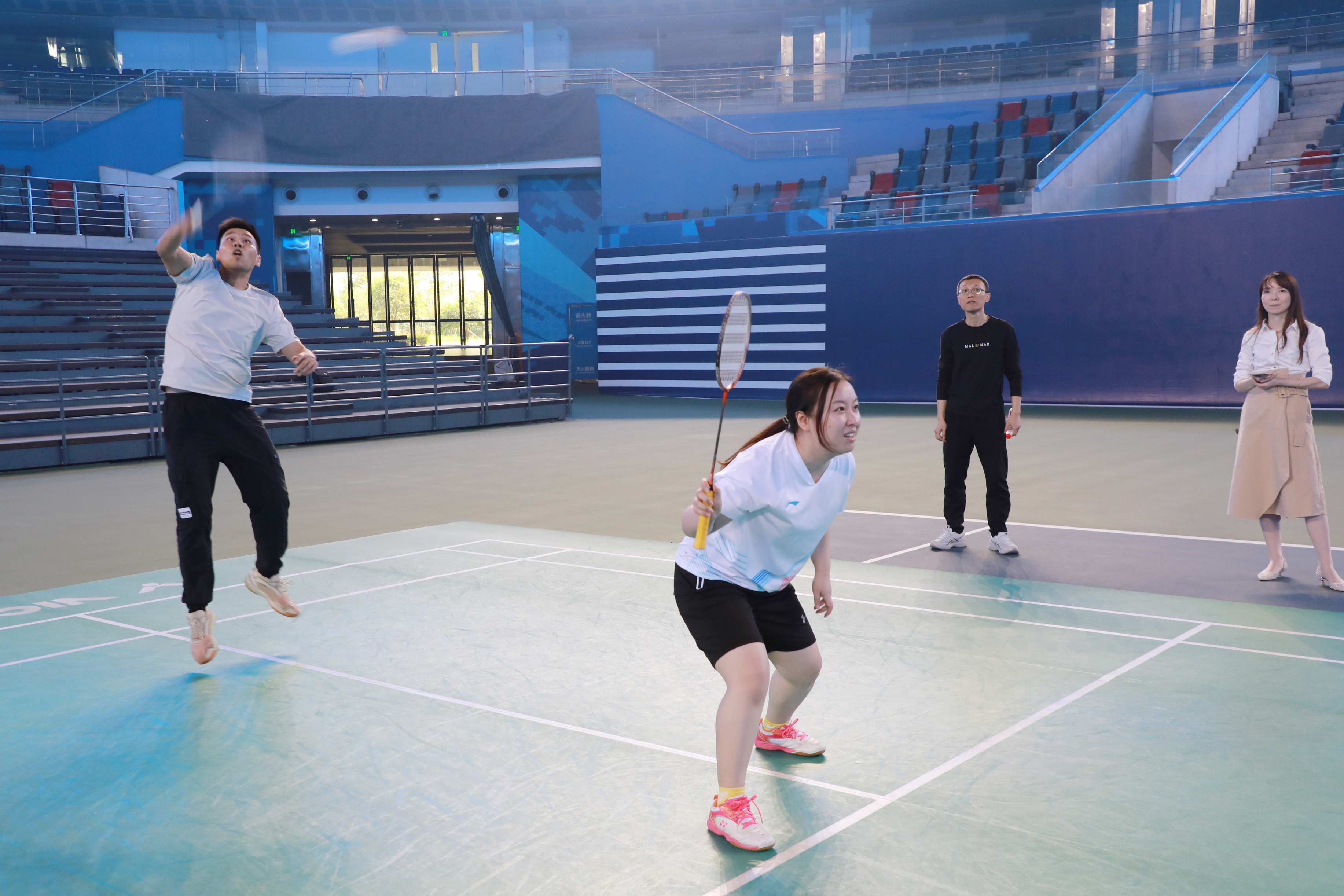 集團黨委委員、紀委書記呂宙宣布比賽正式開始,曾玉梅為比賽開球,正式拉開了本次羽毛球賽的序幕!