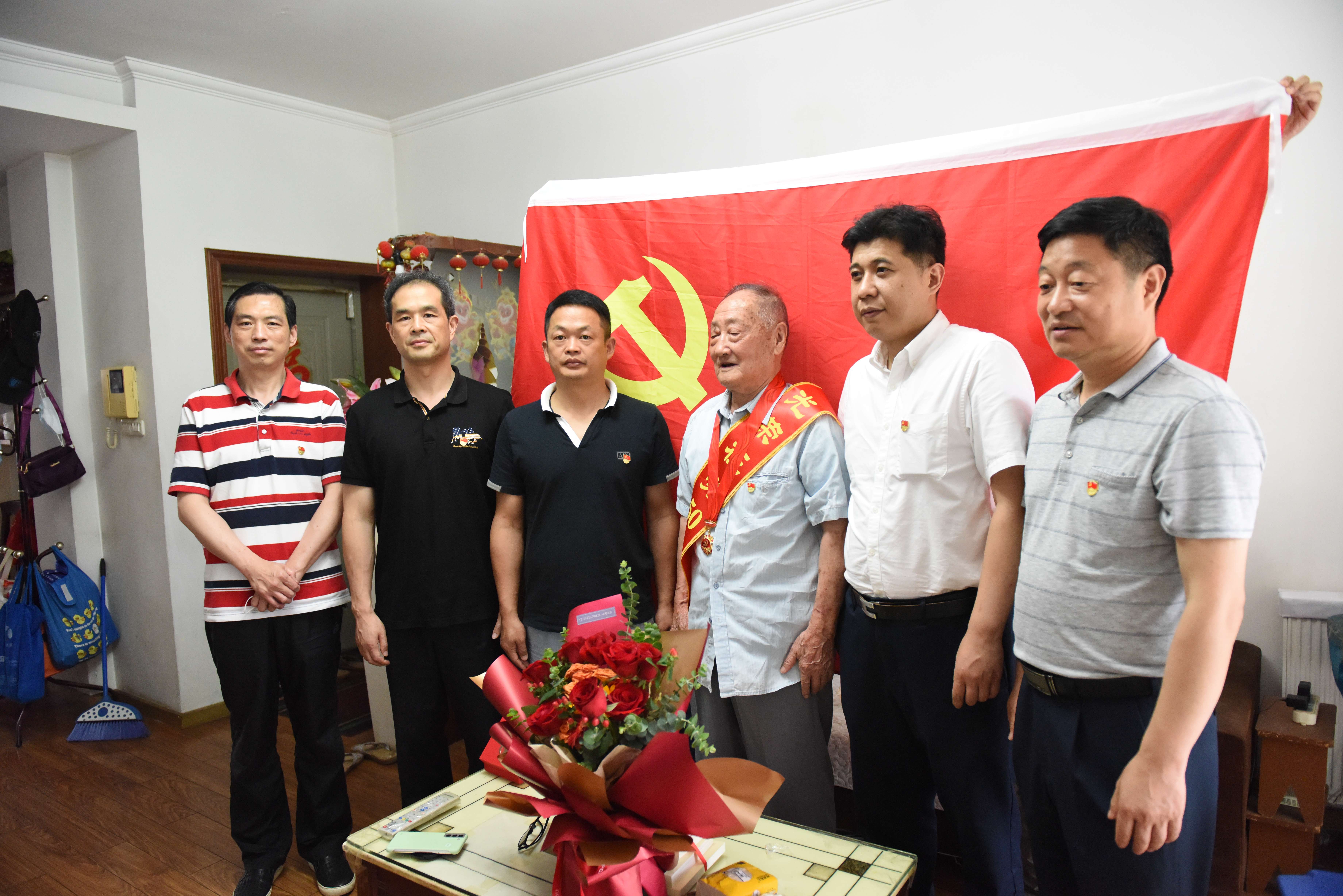 汪志忠一行首先來到老黨員王彩平家中,為她舉行了簡樸而又莊重的頒發(fā)紀(jì)念章儀式,對她黨齡達(dá)71周年表示祝賀,并向她一直以來為黨的事業(yè)和公司發(fā)展作出的貢獻(xiàn)表示感謝。